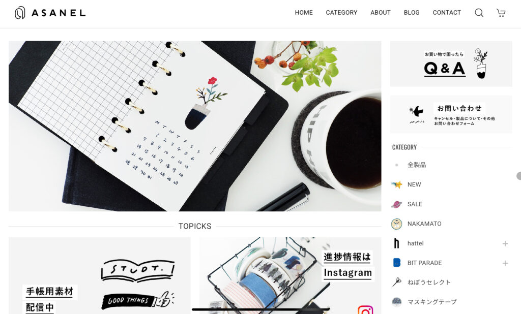今回手帳を購入したお店は「左ききの道具店」「ASANEL」の2つです。