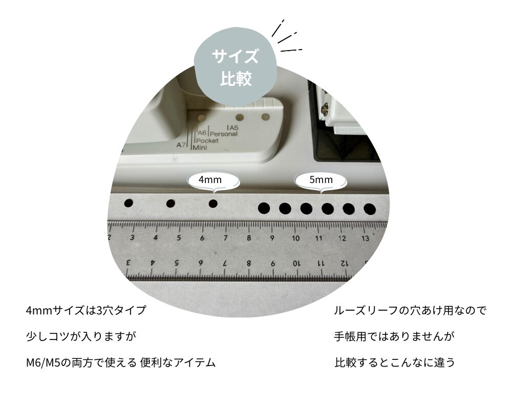そこで、見つけたのがM6M5対応の穴あけパンチ。日本製と海外製で見つけることができました。