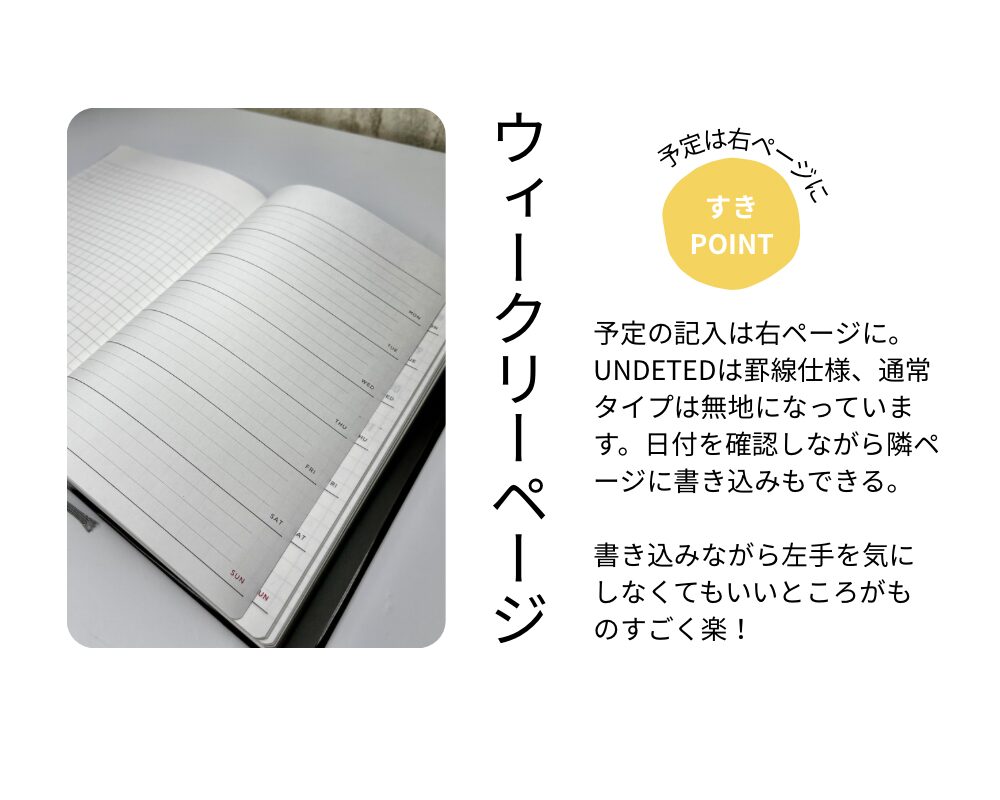 UNDATEDも左仕様なので全体的には使いやすかったのですが、来年は通常版、本体のみを購入してUNDATEDのダークブラウンカバーを使い倒します。
