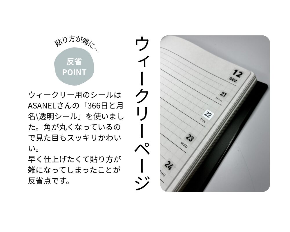 ただ、日付を手書きしたくなかったので相当悩みましたが、ASANELさんから発売された日付シールのおかげで購入決心。