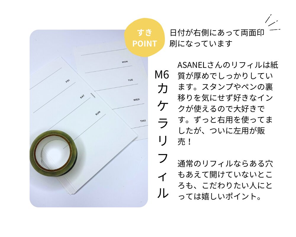 次に、「M6カケラリフィルウィークリー/ASANELより」あのASANELさんからまさかの左きき対応のリフィルが販売されました、嬉しくてすぐに購入。